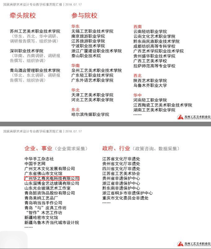 7月16日-20日,由教育部職業院校藝術設計類專業教學指導委員會主辦的"高職藝術設計類專業教學標準立項開題暨培訓會"在北京青年政治學院舉行.華之尊激光作為教育部2018高職藝術設計類產品藝術設計專業、工藝美 術設計專業、雕刻藝術設計專業三大專業的國家教學標準制定參與企業單位榮幸參加了本次會議.