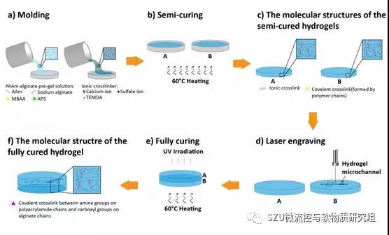 高強(qiáng)度水凝膠微流控芯片的制備工藝原理圖和機(jī)理