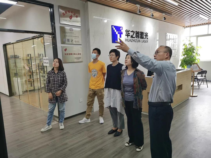 華之尊迅 10月27日,廣州華之尊光電科技有限公司喜迎廣東職業技術學院藝術設計學院院長王丹玲、副院長陳海玲、實驗室主任李科三位領導的蒞臨指導,參觀了華之尊(廣州)總部與其他院校聯合共建的校外實訓基地、激光加工研發基地、先進應用展廳、綜合培訓中心。秦斌總經理給領導們作了《華之尊激光在藝術設計專業的卓越應用》的專題匯報,全面介紹了華之尊激光在高校及職業院校藝術設計類專業的先進應用及與全國各高校開展的各種形式的產學研合作及成果,以及新材新技術新工藝在藝科結合方向的開展情況及全球時尚產業的前沿應用。