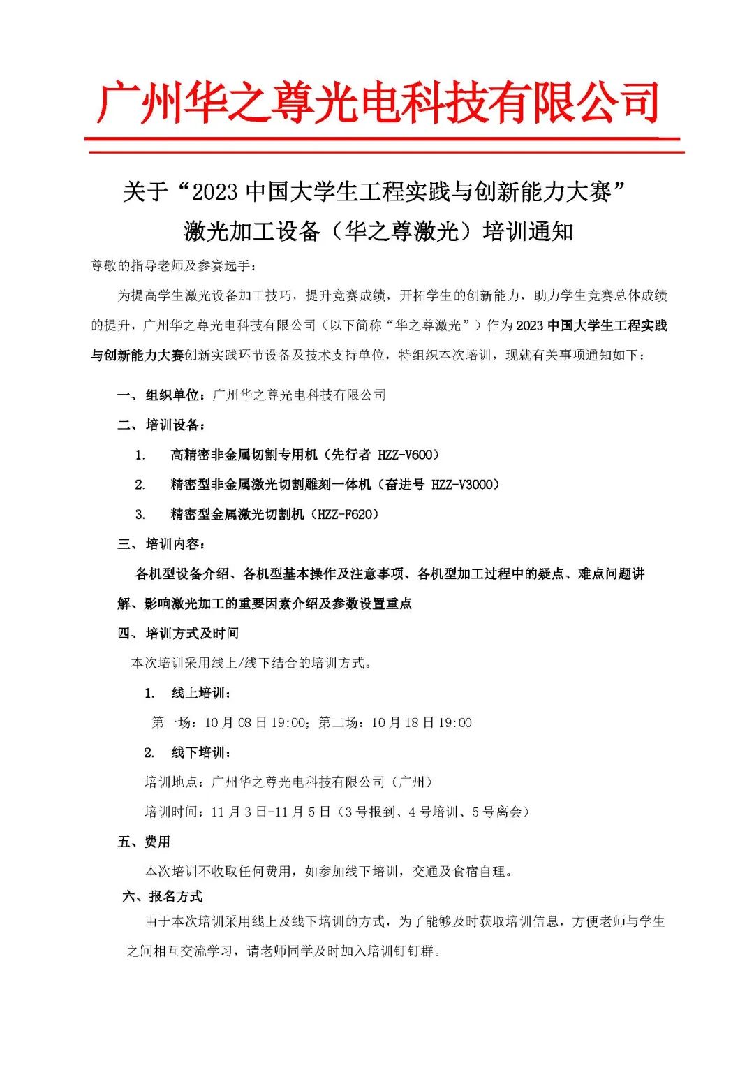 為提高學(xué)生激光設(shè)備加工技巧,提升競賽成績,開拓學(xué)生的創(chuàng)新能力,助力學(xué)生競賽總體成績的提升,廣州華之尊光電科技有限公司(以下簡稱“華之尊激光”)作為2023 中國大學(xué)生工程實踐與創(chuàng)新能力大賽創(chuàng)新實踐環(huán)節(jié)設(shè)備及技術(shù)支持單位,特組織本次培訓(xùn)。