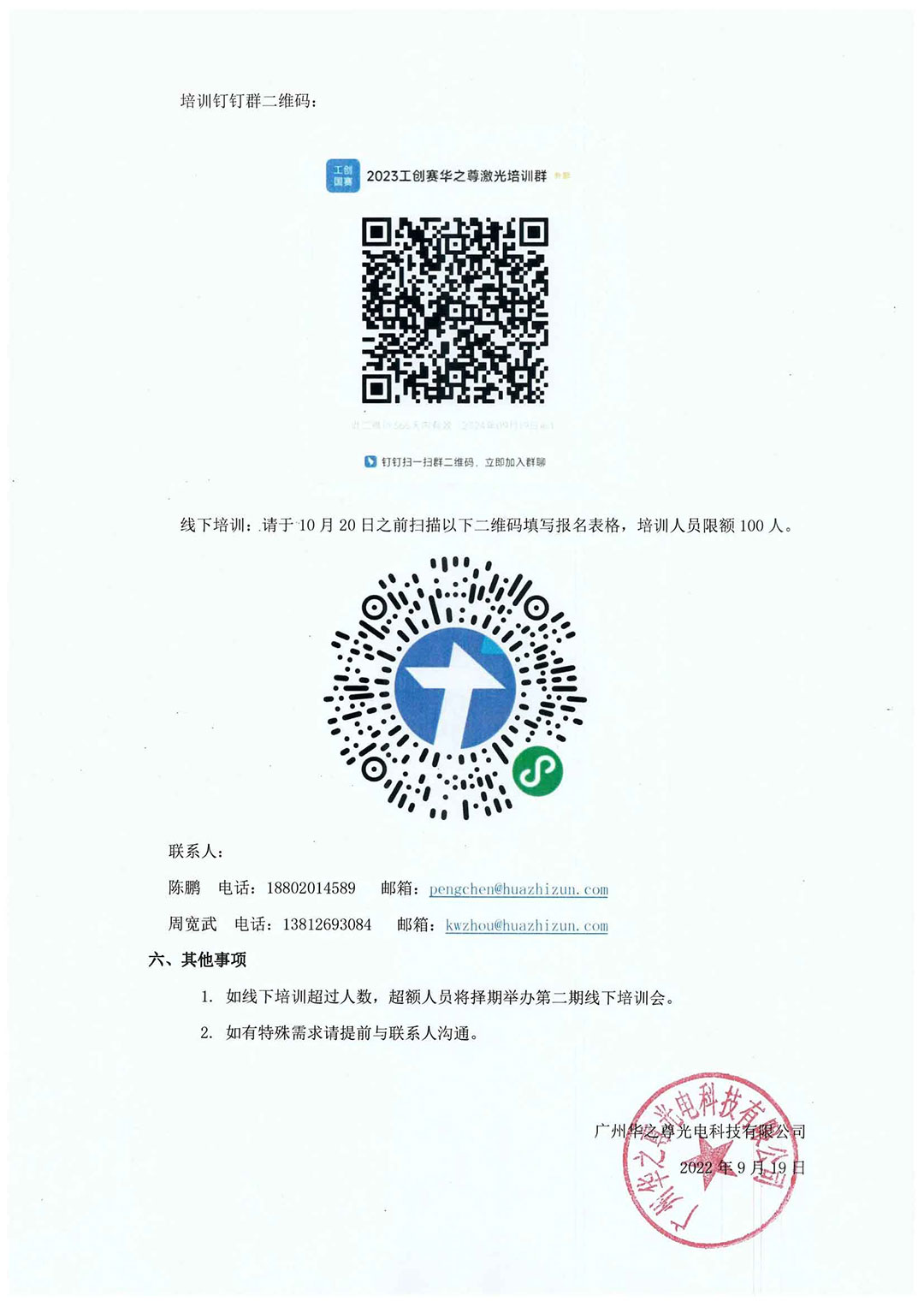 本次培訓(xùn)分為線上培訓(xùn)以及線下培訓(xùn),線上培訓(xùn):10月08日19:00、10月18日19:00;線下培訓(xùn):11月3日-11月5日在廣州華之尊光電科技有限公司(廣州)。本次培訓(xùn)主要內(nèi)容為各設(shè)備介紹、各設(shè)備的基本操作及注意事項、各設(shè)備加工過程中的疑點、難點問題講解、影響激光加工的重要因素介紹及對應(yīng)。