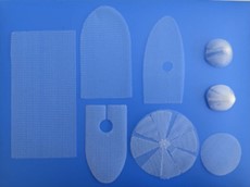 房間隔缺損封堵器一般為鎳鈦合金,內附高分子生物薄膜,網狀結構內部填充有聚酯滌綸或聚四氟乙烯,常用的有牛心包瓣膜和豬心包瓣膜。可用于治療先天性心臟病、乳房再造 、眼球萎縮義眼再造 、喉部再造 、硬腦膜 、頸動脈內膜剝脫等各類醫療過程中。