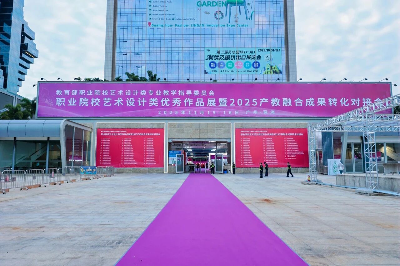 為展示全國職業院校藝術設計類專業以教促產、以產助教,深化產教融合、產學合作,促進作品—產品—商品成果轉化,推動專業人才培養與產業發展需求銜接,促進就業創業,為此,由教指委主辦的全國職業院校藝術設計類優秀作品展暨2025年校企融合成果轉化對接會于2025年11月15日—16日在廣州琶洲靈感創新展館成功舉辦。