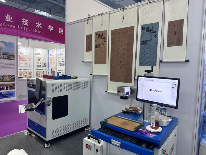 展會現場,華之尊激光以其在教育領域的卓越成就亮相,全面展示了包括教學成果、教材/課程成果、科研成果、大賽成果、賽事支持、平臺建設以及就業育人/協同育人等多個維度的輝煌成果,并攜多款升級智能制造微納激光加工設備驚艷亮相,不僅為職業院校藝術設計相關專業提供了堅實的技術支撐和豐富的教學資源,而且為廣大學生搭建了一個廣闊的實踐平臺,極大地增強了他們的創新思維和實踐操作能力,為培育新時代的設計英才貢獻了重要力量。